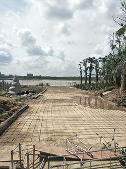 本次工程項(xiàng)目名稱是藝術(shù)壓模路面施工,施工地點(diǎn)在上海市浦東新區(qū)杞青路,工藝為80mm厚人行道及90mm厚車行道藝術(shù)壓模路面,范圍是東區(qū)部分壓印藝術(shù)壓模路面、礫石路面合計(jì)約15000平方米,施工區(qū)域包含整個(gè)東區(qū)。